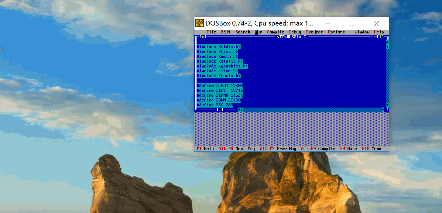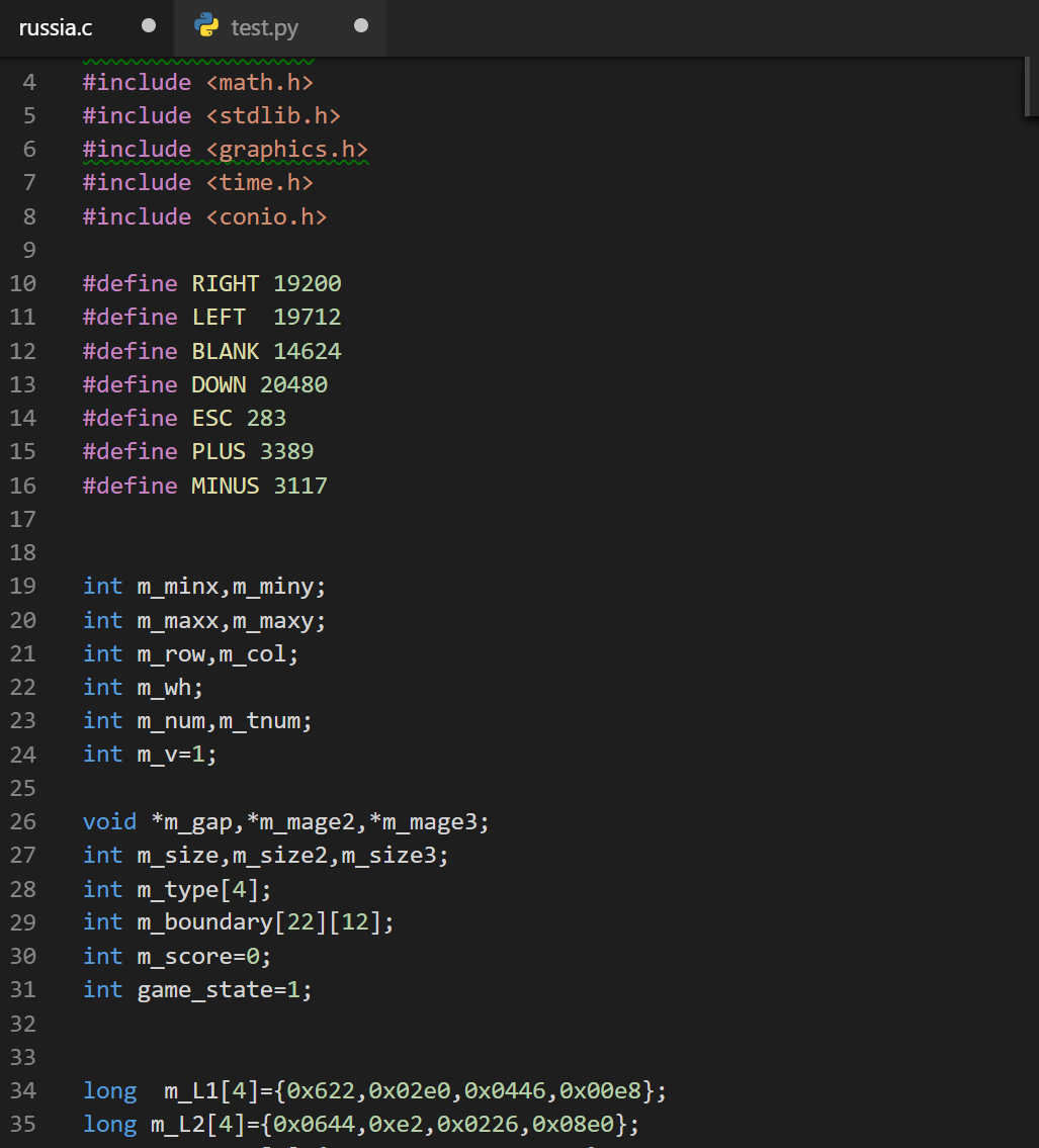 由纯C语言实现的俄罗斯方块小程序,代码长度700行,使用Turbo C图形库美化了界面,并具俄罗斯方块游戏的所有基本功能。玩家可以通过键盘的“上下左右”键移动“方块”,“空格”去翻转方块,每当方块可以将一行“填满”的时候这一行方块就会消除