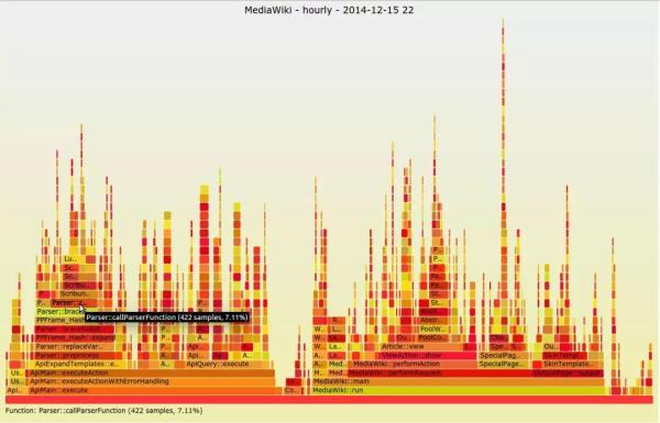 不太常见的可视化是由Netflix的Brendan Gregg于2011年推出的火焰图。它不是仪表板或快速观察高级系统问题的理想选择。在尝试理解特定的应用程序问题时通常会看到它。此可视化关注于CPU和内存以及关联的帧。 X轴按字母顺序列出帧,Y轴显示堆栈深度。每个矩形都是一个堆栈帧,包括被调用的函数。矩形越宽,它在堆栈中出现的越多。在尝试在应用程序级别诊断系统性能时,此方法非常有用,我建议大家尝试一下。