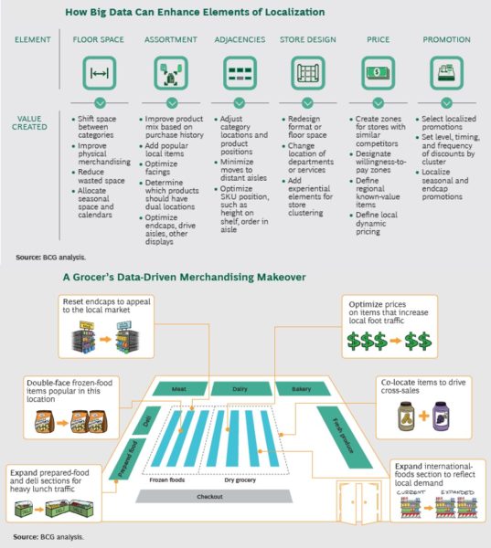 (9)使用大数据创建性能集群的分散式一般商品零售商的销售额增长3%至4%。大数据是零售行业改造的催化剂,为本地化带来了比以往更大的精确度。大数据如今用于增加终端促销的投资回报率、优化销售、有助于改善追加销售和交叉销售业绩,并优化推动最大流量的物品的价格。