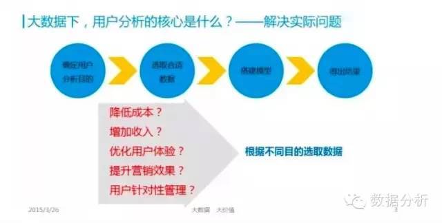 确定目的后开始选择合适的数据,然后搭建模型,最后得出结果,并用数据可视化解读。
