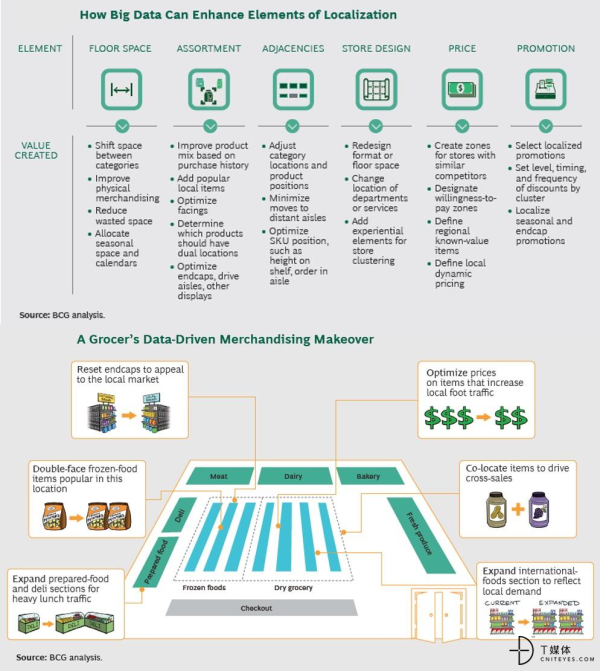 波士顿咨询集团(BCG)发现,通过利用大数据一家分散型的日用百货零售商的销售额将增长3%到4%。大数据将成为零售业转型的催化剂,并未本地化带来比以往程度更高的精确度。如今,大数据正在被零售商用来增加投资回报率、优化规划路径图、提升销售与交叉销售的业绩,并同时优化商品价格。
