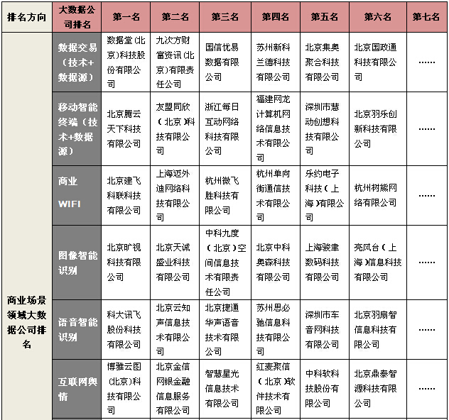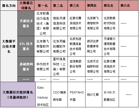 首先,所有参加排名的公司均为中国公司(非外资控股,注册地在中国)。其次,定量与定性指标相结合,企业注册资本、资产规模、融资规模、员工数、销售额、流动资金等,定性指标有企业资源、发展前景、发展速度、差别化竞争力、知名度、领导层能力、团队稳定性等。再者此次排名的反馈信息来自与大数据领域相关的产、学、研、用各领域的专家。