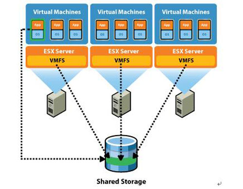 更重要的一点,虚拟磁盘对于众多的VM来说是共享的,因为VM需要随时创建、删除或者迁移,在迁移VM的时候就需要共享存储,只有这样原来的数据才不会丢失。无论DAS还是SAN,都不适合共享存储。