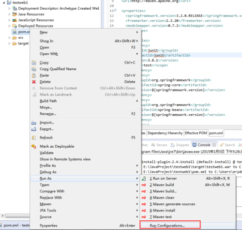 那么对于更新Maven的jar包的方法是:右键项目选择Maven菜单下的update
