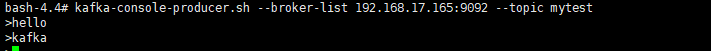 第二步: 发送信息:kafka-console-producer.sh --broker-list 192.168.17.165:9092 --topic mytest