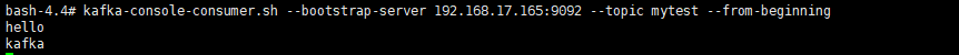 第三步:另开启一个窗口消费信息:kafka-console-consumer.sh --bootstrap-server 192.168.17.165:9092 --topic mytest --from-beginning