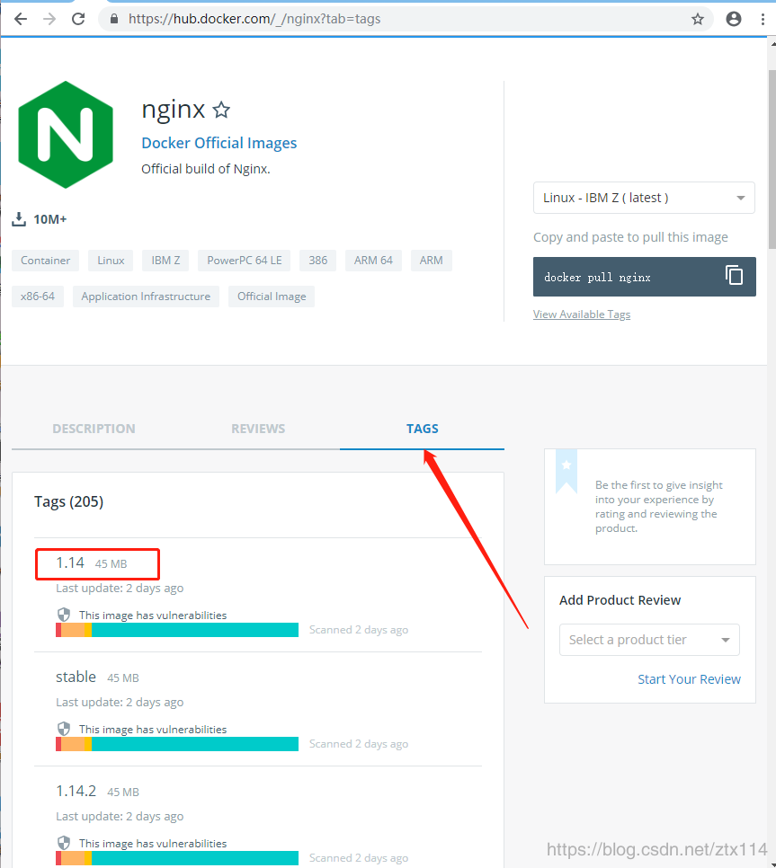 要想查看镜像的版本好TAG,需要在docker hub查看