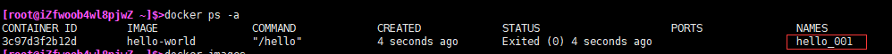 > docker run -it --name hello_001 hello-world //创建一个容器,并指定标签