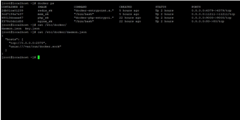 这是运行的容器,/etc/docker/daemon.josn为使用api访问docker的配置(目的是使phpstorm能访问到容器)
