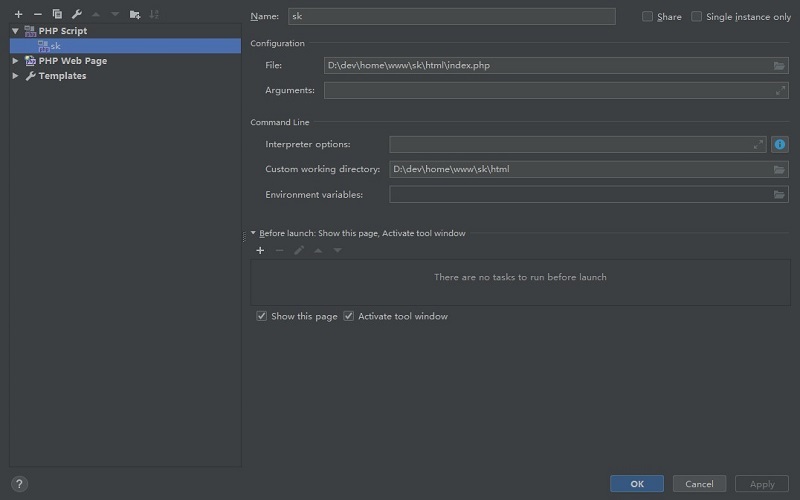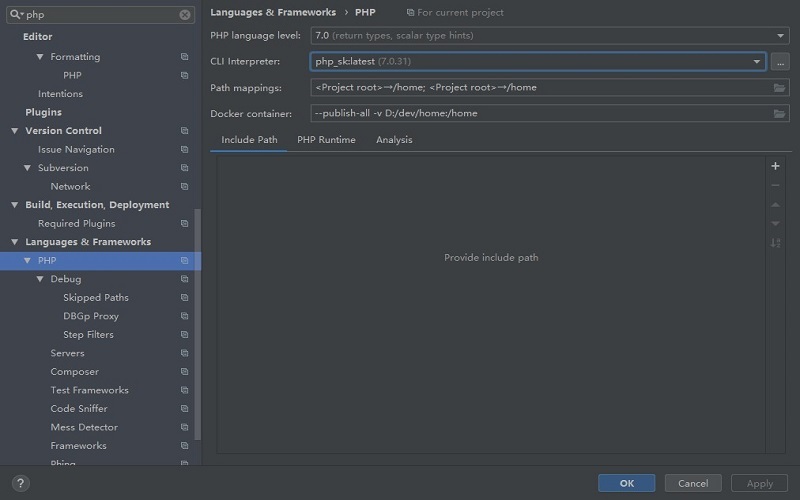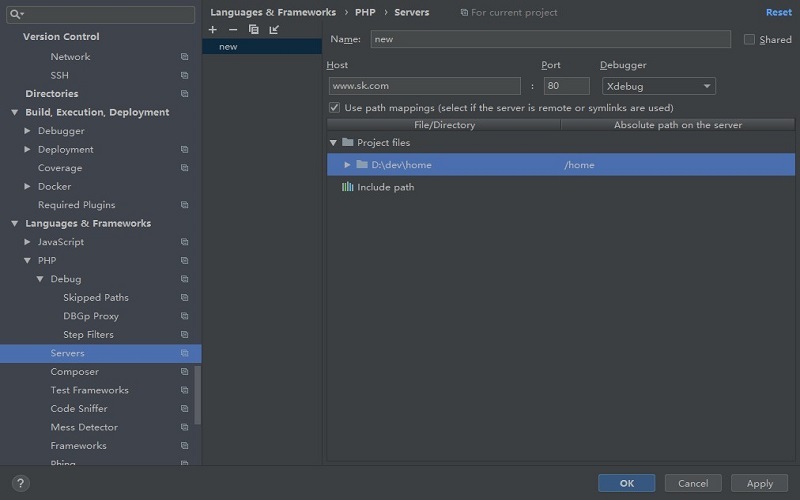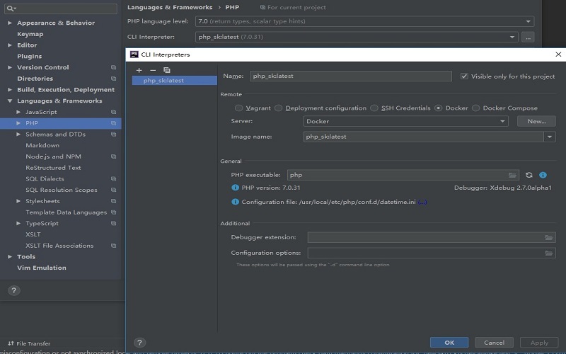 首先,容器中的php环境需要有安装好xdebug扩展并且配置好,这里对应的image名称为php_sk。