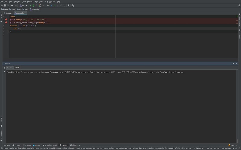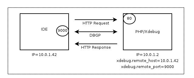 xdebug是php的扩展,会搜集php执行的信息,然后发送给指令的远程ip+port。这里通常我们使用的开发工具会监听某个port。接受到php执行信息。再debug界面进行显示。