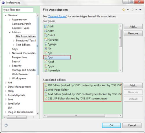 然后点击下Associated editors,逐一remove掉里面的东西