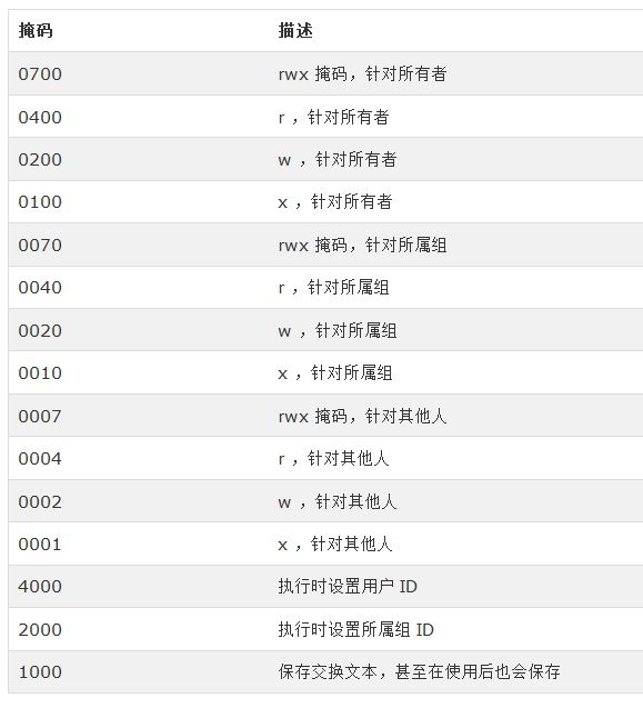 注意:掩码 755 设置所有者(owner)、所属组(group)、每个人(world [anyone])的权限为 rwxr-xr-x,其中 r = read 读取,w = write 写入,x = execute 执行。