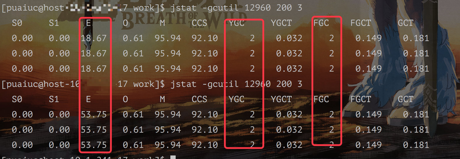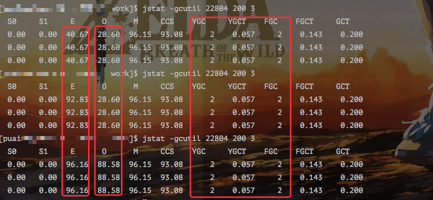 可以看到?Eden?区几乎没有变动,但是老年代却涨了 37% ,根据之前计算的老年代内存?2730M?算出来也差不多是?1000M?的内存。
