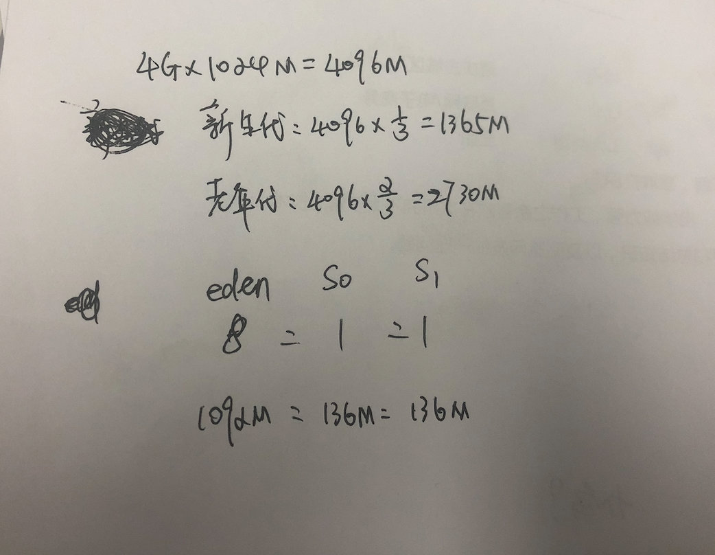 由于初始化的堆内存为?4G,所以算出来的?Eden?区大概为?1092M?内存。