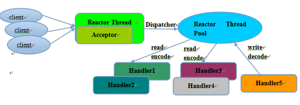 我们采用Netty的NIO传输模式来提升I/O操作的效率,节省线程等其它资源开销,它的模型如下所示: