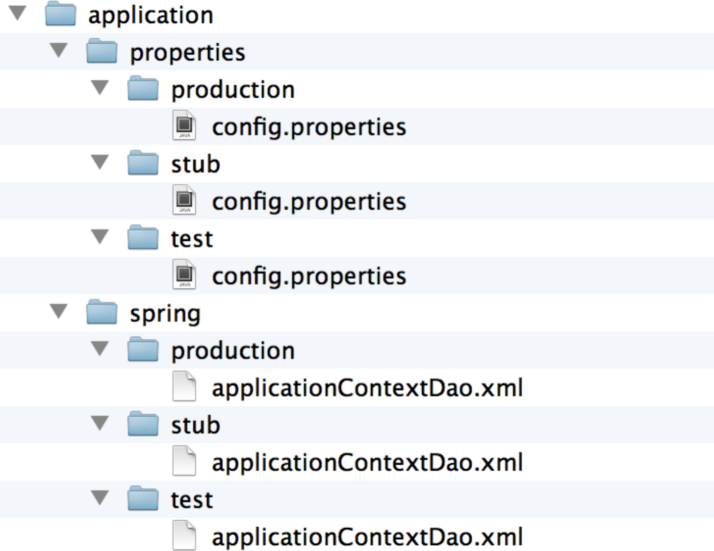 例如,在我们项目的config目录下包含了application文件夹,定义了不同环境所需的不同配置文件,其目录结构如下图所示: