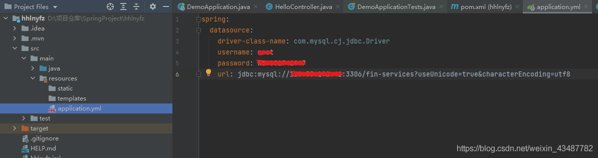 三、在 application.yml 中配置 mysql 信息