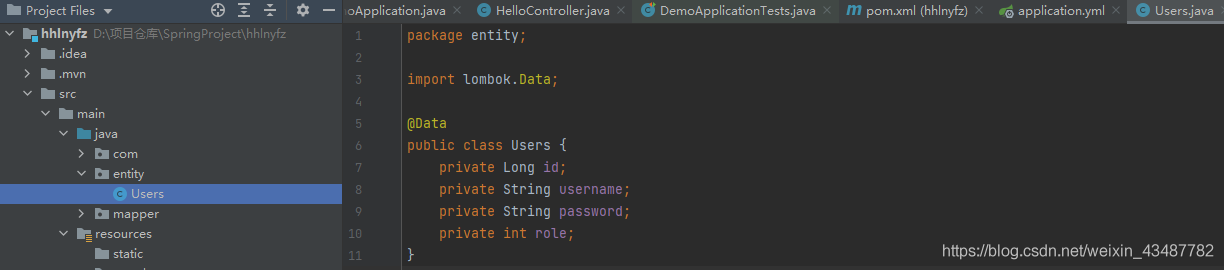 mysql 依赖用于连接数据库;为了简化代码,添加了 lombok 依赖,用于减少 getter、setter 等方法