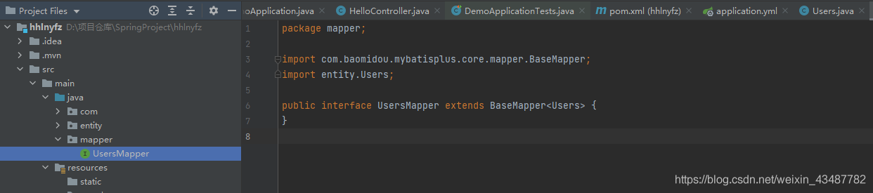这里直接继承 basemapper 类 (mybatis-plus 封装好的类)