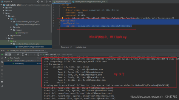 如下图所示,执行时会打印出 sql 语句: