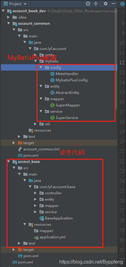 典型的maven工程,在common中配置mybatisplus配置信息,在base中进行crud操作。