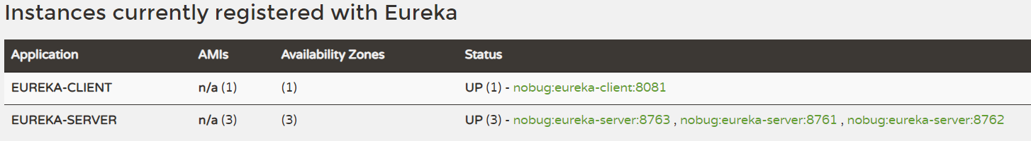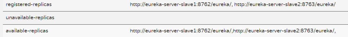 eureka: instance: hostname: eureka-server-master eureka: instance: hostname: eureka-server-slave1 **eureka: instance: hostname: eureka-server-slave2