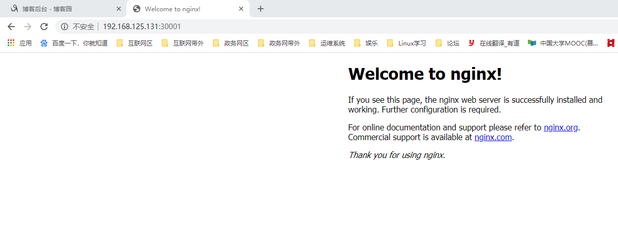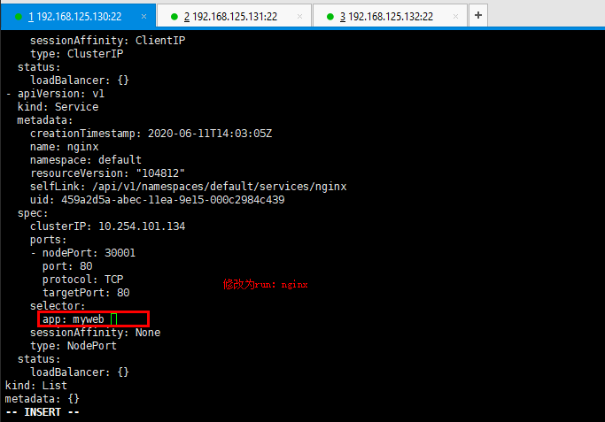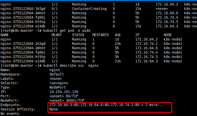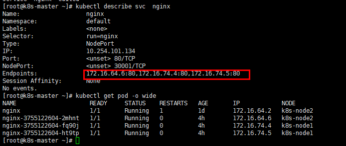 [root@k8s-master ~]# kubectl create -f nginx-sv.yaml service "nginx" created [root@k8s-master ~]# kubectl get svc NAME CLUSTER-IP EXTERNAL-IP PORT(S) AGE kubernetes 10.254.0.1 <none> 443/TCP 4d nginx 10.254.101.134 <nodes> 80:30001/TCP 21m [root@k8s-master ~]# kubectl describe svc nginx Name: nginx Namespace: default Labels: <none> Selector: app=myweb Type: NodePort IP: 10.254.101.134 Port: <unset> 80/TCP NodePort: <unset> 30001/TCP Endpoints: <none> Session Affinity: None No events. [root@k8s-master ~]#