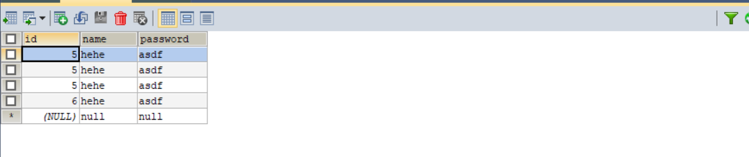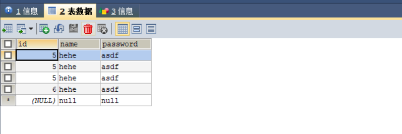 String sql = "insert into users(id,name,password) values(5,'hehe','asdf')";