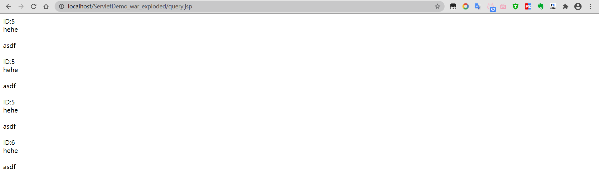在浏览器里面输入对应的映射路径即可,由于程序编写的原因,网页每刷新一次,都会往数据库中插入一条数据。
