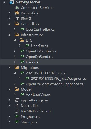 新建一个net5 webapi程序,当前程序主要包含一个用户控制器(包含用户信息的增删改查)并且连接mysql数据库。