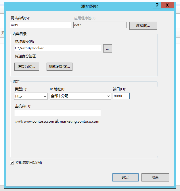 打开iis添加网站,选择物理路径为我们项目文件