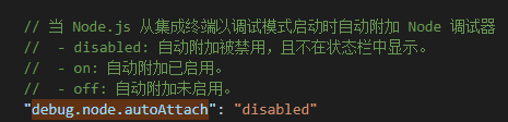 打开用户设置,修改 "debug.node.autoattach": "on" ,开启自动附加