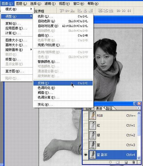 3、选择“图像→调整→反相(Ctrl+I)”(图3),结果见(图4)。