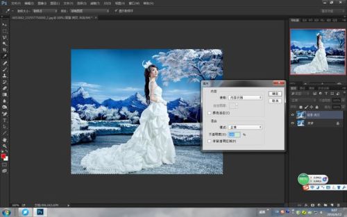 4、“编辑--填充--内容识别”,对选定的水印区域进行智能填充;