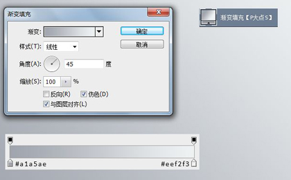 新建一个渐变调整层,做一个45度的从 #a1a5ae 到 #eef2f3 的线性渐变。
