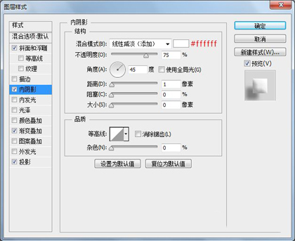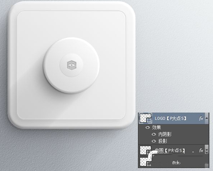添加我们p大点s的logo,同时添加一个图层样式,黑色内阴影,白色投影。