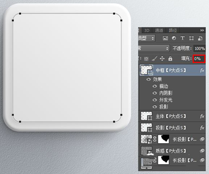 接下来,我们来做那个中框,这里需要注意的是圆角矩形的圆度需要对齐一下,不然看上去很难看。将图层的填充修改为0,添加一个图层样式。