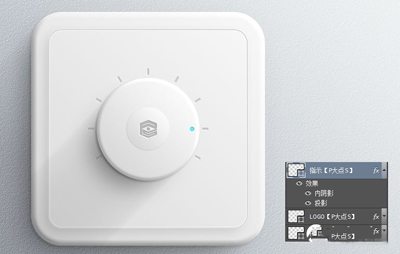 用椭圆工具画一个小圆,做旋纽的指示位置的标记。颜色随大家喜欢了,我自己用的颜色是#77e4ff,同样的添加一个黑色的内阴影,白色的投影。