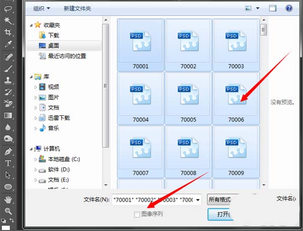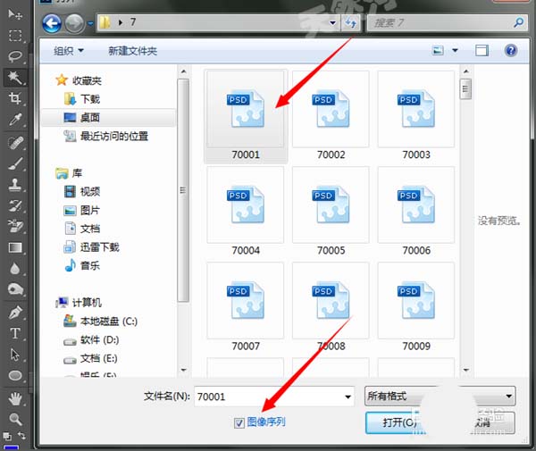 2、当你选择好要打开的序列素材的时候可以看到在它的下面有一个图像序列,我们在选中一张序列图片,然后在图像序列前面打上勾。