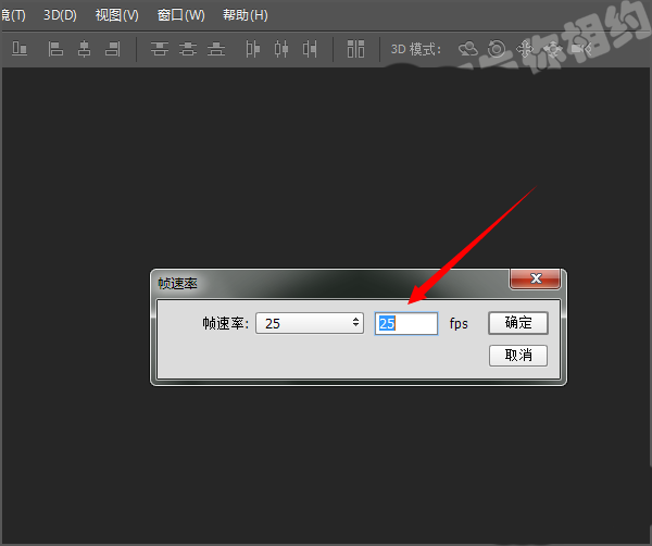 3、点击确定之后,它会会弹出一个帧速率的面板,你可以根据需要选择下合适的数。这里我就把它的帧速率改为25.