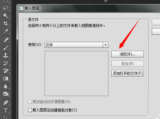 8、点击堆栈之后,在弹出的对话框中点击浏览。点击浏览是要进行添加图片素材。