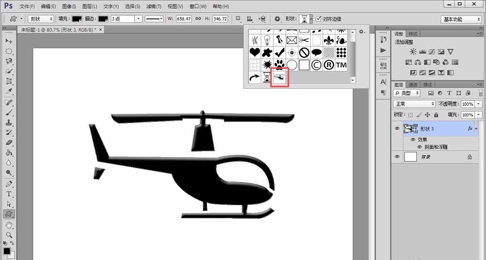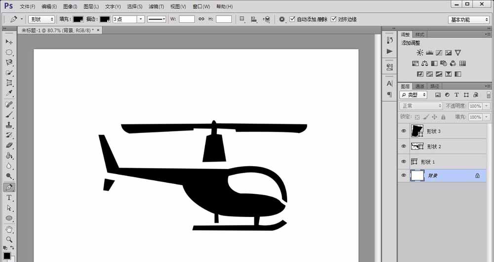 ps中想要画一个直升机并将它添加到自定义形状中,该怎么添加呢?下面我们就来看看详细的教程。