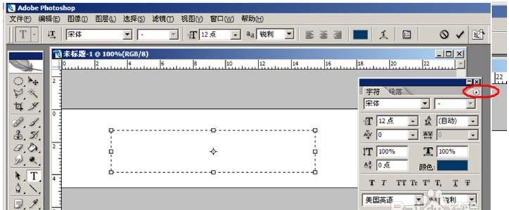3、留心观察:在字符调控窗口右上方,有一个向右方向的小三角形 ▶,点击该三角形,就会弹出一个新窗口,(这个小三角形较小,容易被忽视)。