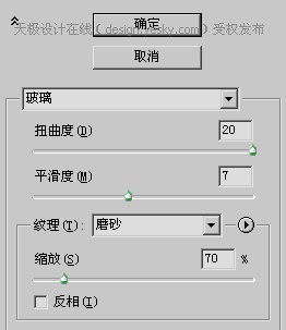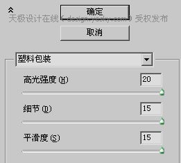 2、依次使用【滤镜_艺术效果_塑料包装】、【滤镜_扭曲_波纹】、【滤镜_扭曲_玻璃】,设置分别如下各图。