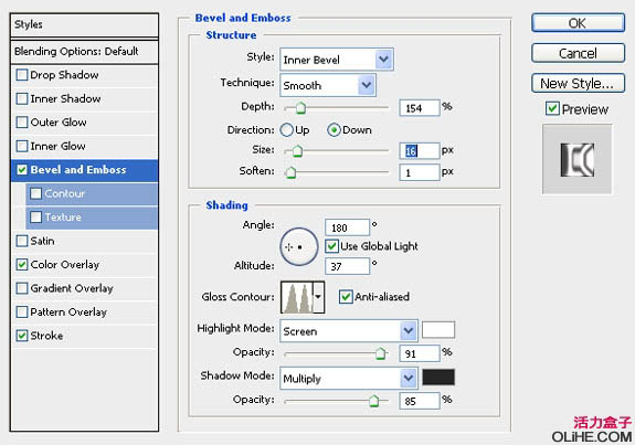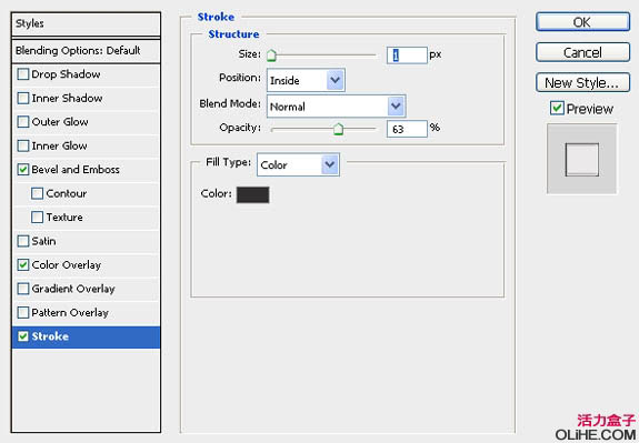 4、我们回过头来处理“border”图层。选中图层,添加图层样式。斜面/浮雕、颜色叠加和描边。