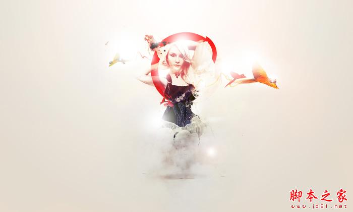 14、用软橡皮擦(用40%的流量和不透明度)擦掉鹦鹉图示的部分并增加一些光效。