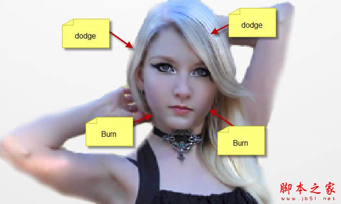 4、应用一些轻微减淡和加深效果用颜色减淡和加深工具(设置曝光度为10%)在模特上。