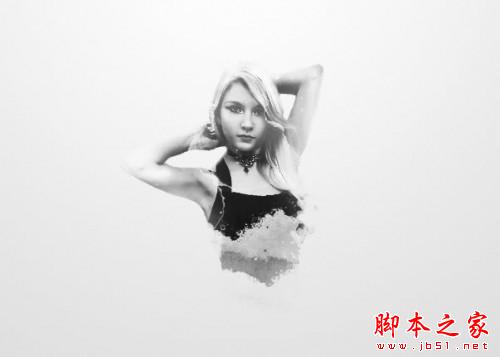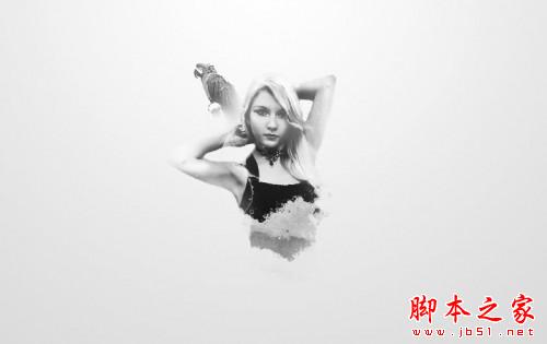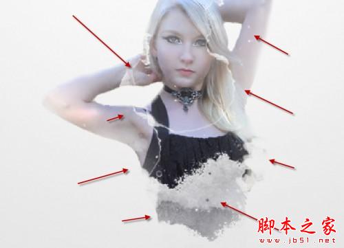 5、用裂痕笔刷作橡皮擦,擦掉模特某些部分,如图。在你用橡皮擦之前,调整为较小尺寸的笔刷。