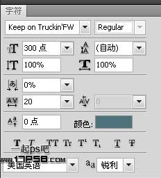 输入字母snow,颜色#4e737b,尺寸300点,字体keep on truckin'fw。